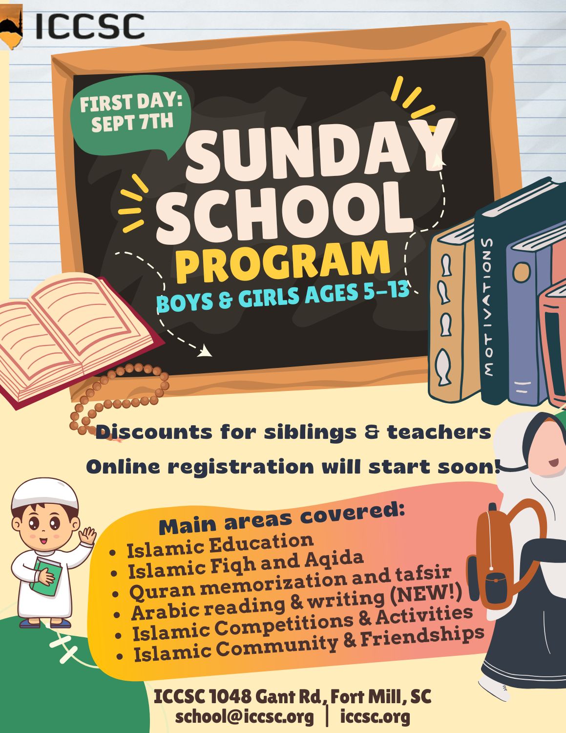 The Islamic Community Center of South Charlotte (ICCSC), located in Fort Mill, SC, is the only Masjid serving the South Charlotte (Ballantyne)/Fort Mill community since 2008. Our amenities include a large prayer hall, gym, full-time Imam, youth & sister's programs, weekend Islamic school, library, playground, soccer field and ample parking.