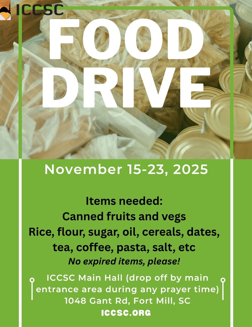 The Islamic Community Center of South Charlotte (ICCSC), located in Fort Mill, SC, is the only Masjid serving the South Charlotte (Ballantyne)/Fort Mill community since 2008. Our amenities include a large prayer hall, gym, full-time Imam, youth & sister's programs, weekend Islamic school, library, playground, soccer field and ample parking.