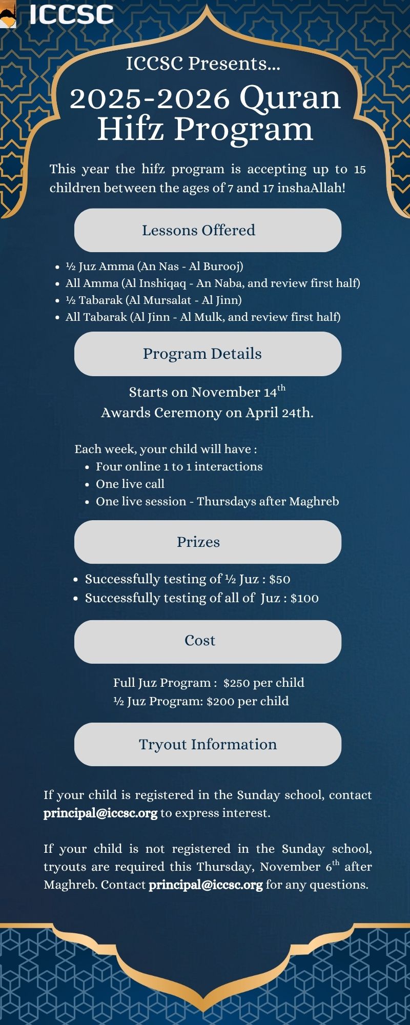 Early voting available: Sunday, Nov. 16th between Asr and Maghrib